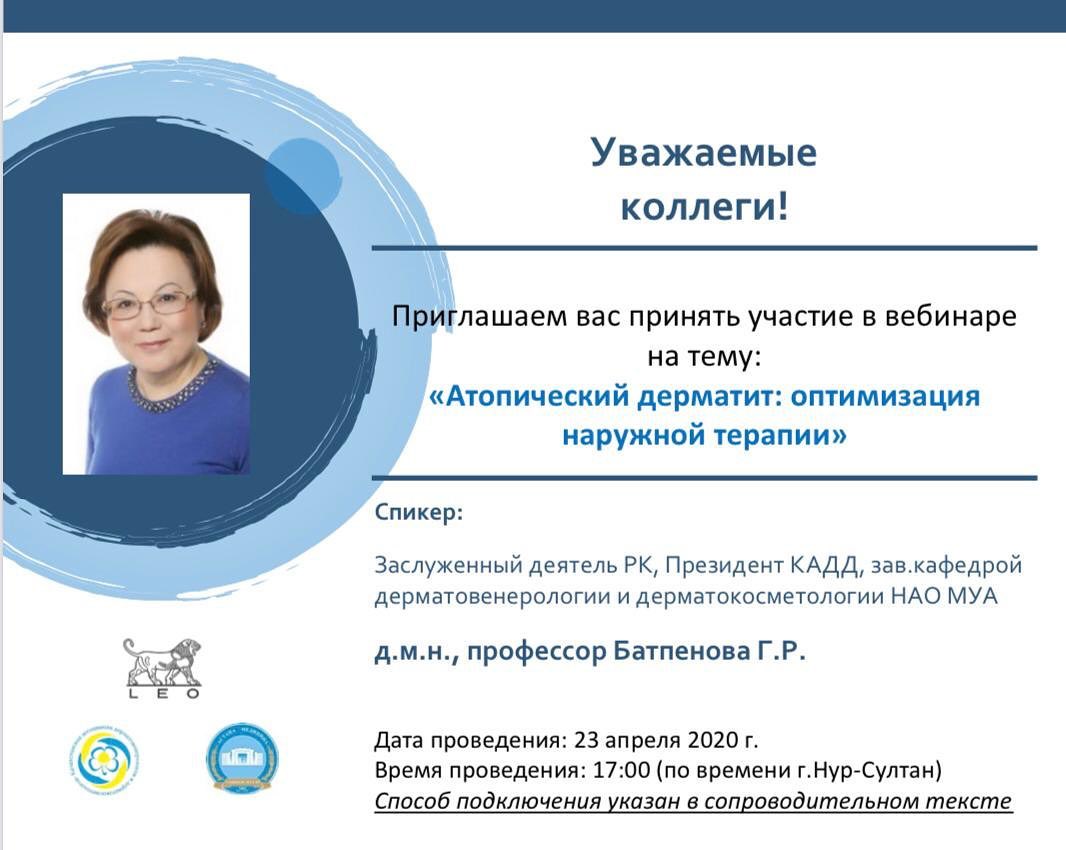 We invite you to take part in the webinar on the topic: "Atopic dermatitis: optimization of external therapy."