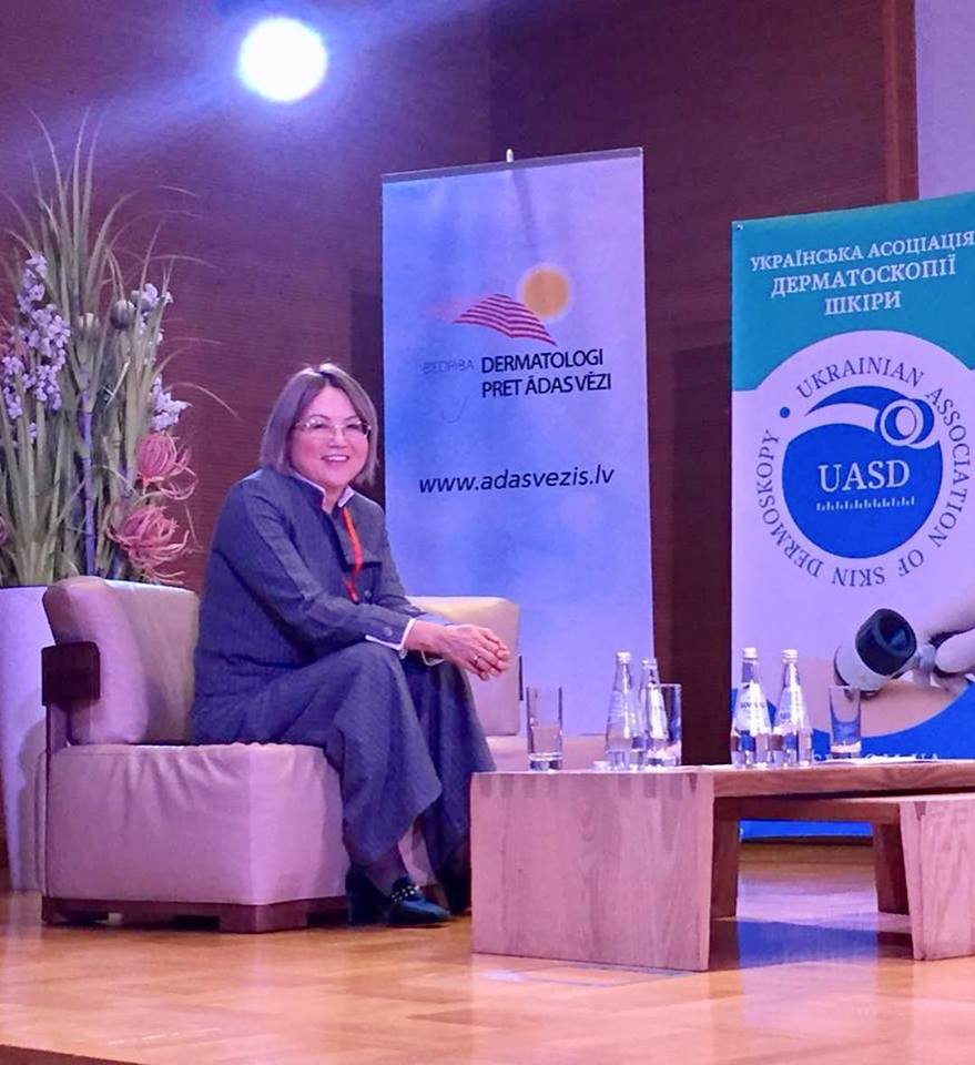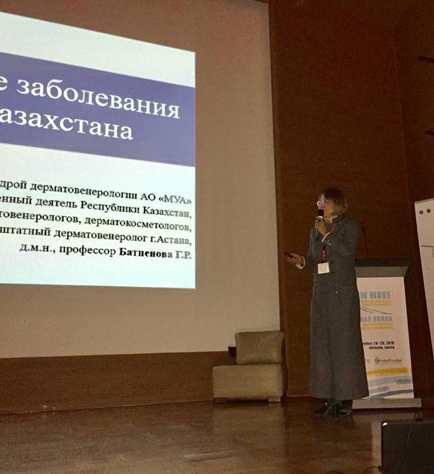 Казахстанскую делегацию на международном форуме «Новая волна в дерматоскопии и дерматоонкологии» в Юрмале с гордостью представляет Президент Казахстанской Ассоциации дерматовенерологов, дерматокосметологов, д.м.н., профессор Батпенова Гульнар Рыскельдыевна, выступившая с докладом о ранее неосвещенных в литературе региональных особенностях азиатской кожи, а также о специфике фотоиндуцированных дерматозов у населения нашей Республики.