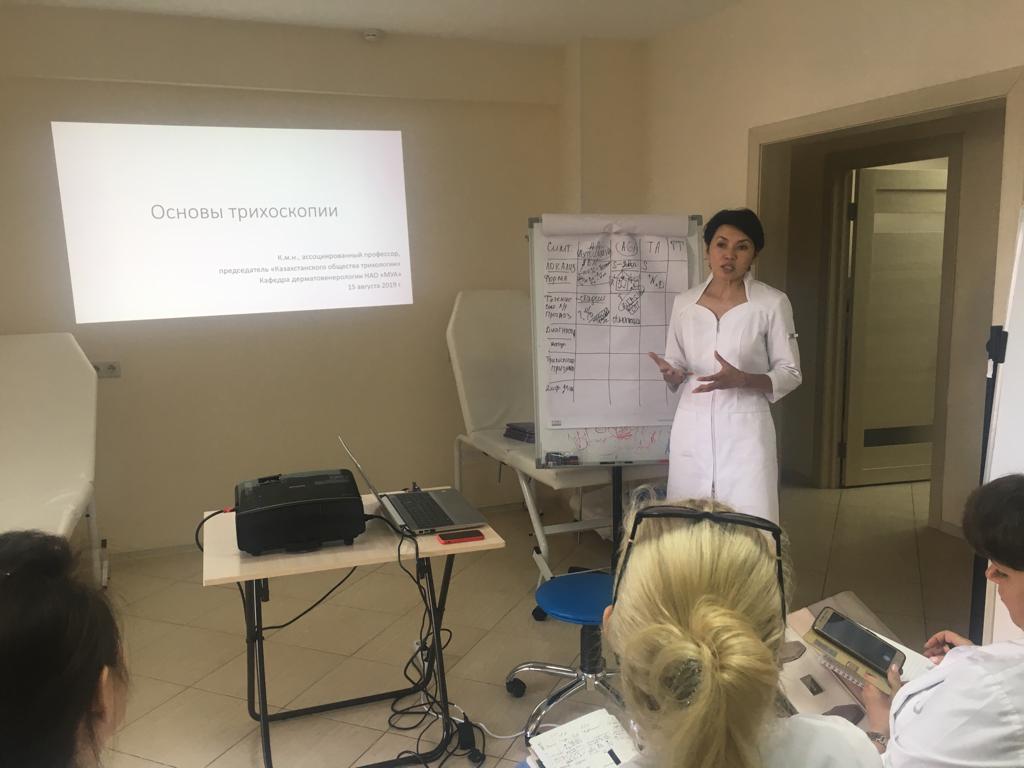 15 августа 2019 года под эгидой Казахстанской ассоциации дерматовенерологов, дерматокосметологов и Казахстанского общества трихологии состоялся первый обучающий трихоскопический курс «Основы трихоскопии».