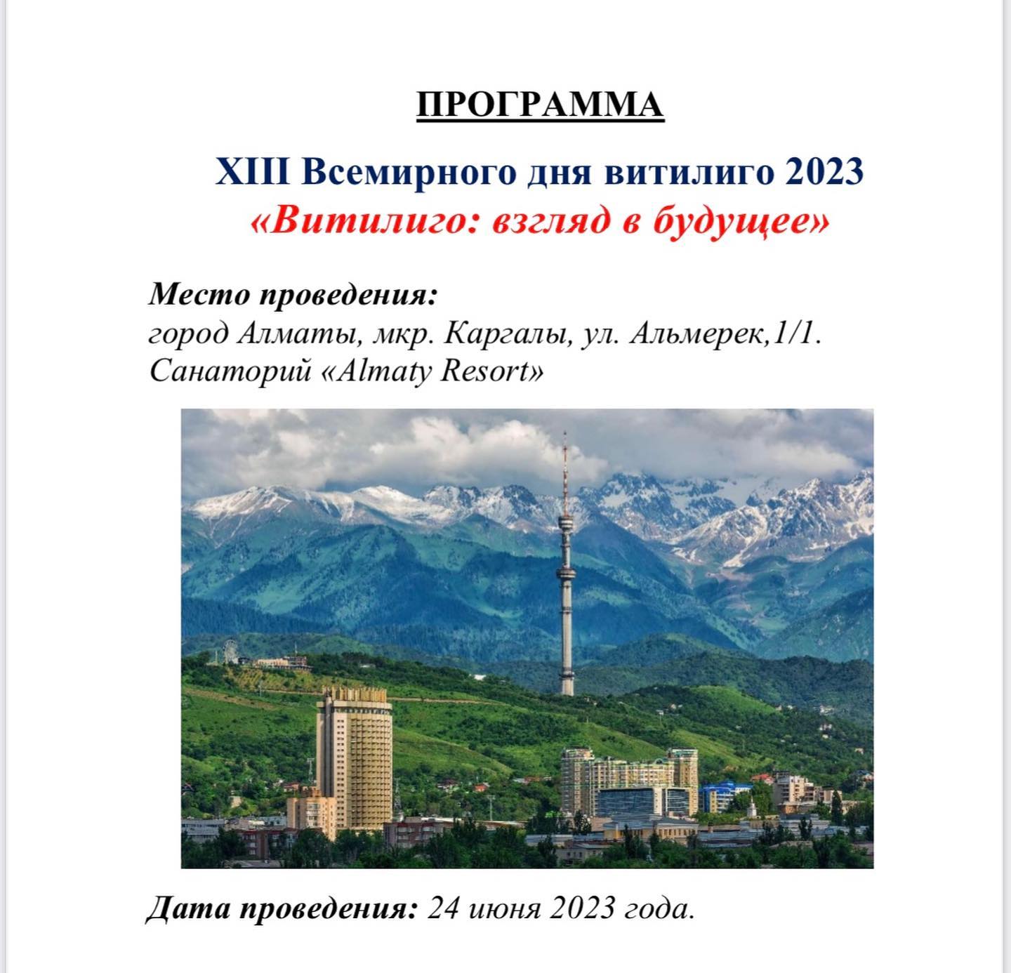 24 июня 2023 г. в г. Алматы состоялась XIII Всемирная конференция по витилиго, на которой присутствовала главный внештатный дерматовенеролог МЗ РК, профессор Батпенова Г. Р.